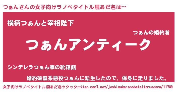 | 男性向けラノベタイトル風あだ名 | 『魔法科高校のつぁん』 |