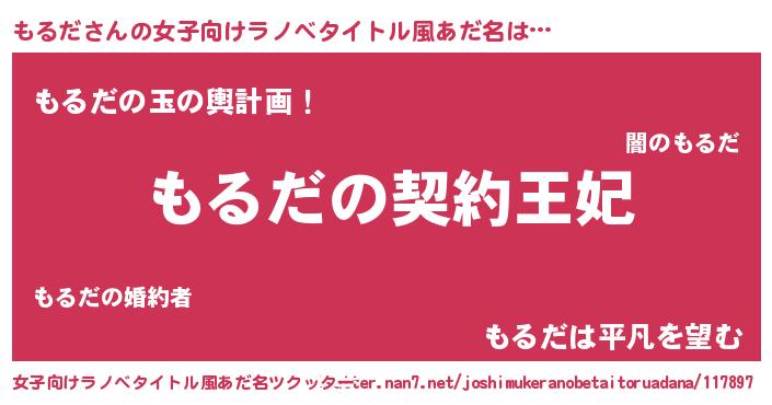 | 男性向けラノベタイトル風あだ名 | 『もるだという概念が存在しない退屈な世界 』 |