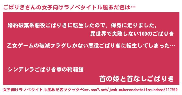 | 男性向けラノベタイトル風あだ名 | 『この素晴らしい世界にごばりきを!』 |