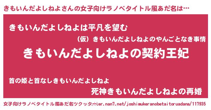 | 男性向けラノベタイトル風あだ名 | 『きもいんだよしねよという概念が存在しない退屈な世界 』 |