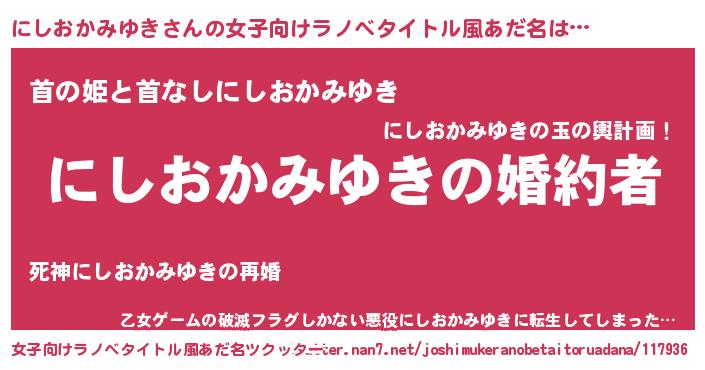 | ファンタジー風あだ名 | 『エターナルニシオカミユキー』 |
