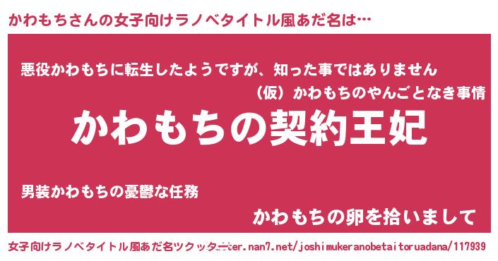 | 男性向けラノベタイトル風あだ名 | 『かわもちという概念が存在しない退屈な世界 』 |