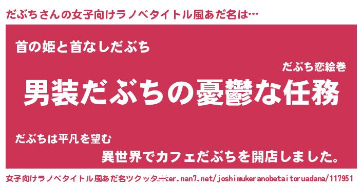 | ヒーロー風カッコイイあだ名 | 『ネオダブチ』『正義の使者だぶち』 |