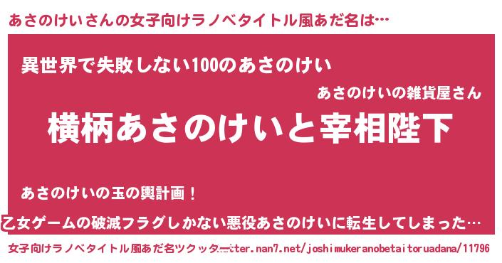 | 男性向けラノベタイトル風あだ名 | 『あさのけいに滅ぼされるだけの簡単なお仕事です』 |