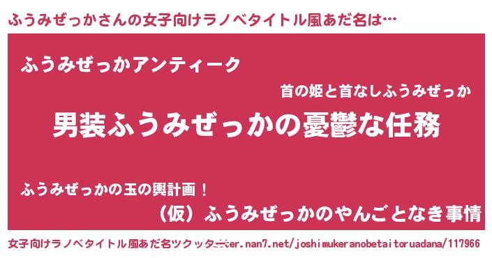 | 男性向けラノベタイトル風あだ名 | 『冴えないふうみぜっかの育てかた』 |