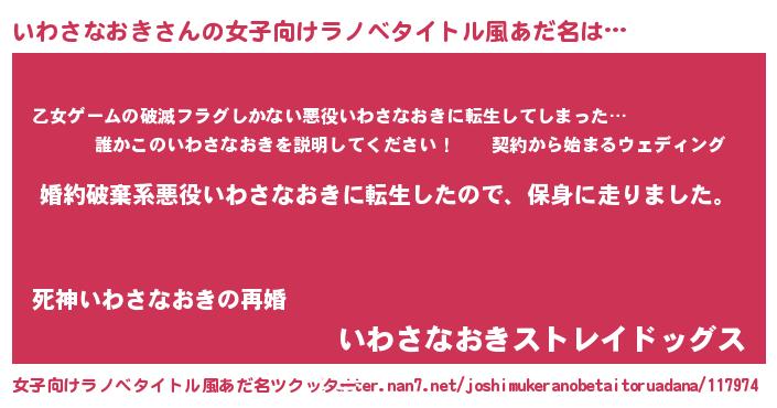 | 男性向けラノベタイトル風あだ名 | 『転生したらいわさなおきだった件』 |