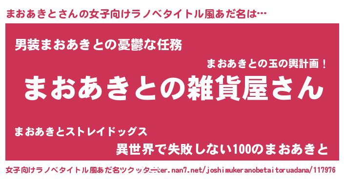 | 男性向けラノベタイトル風あだ名 | 『やはりまおあきとの青春ラブコメはまちがっている 』 |