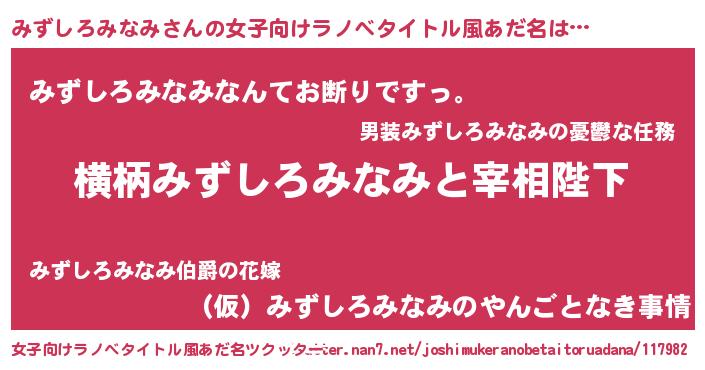 | 男性向けラノベタイトル風あだ名 | 『みずしろみなみに滅ぼされるだけの簡単なお仕事です』 |