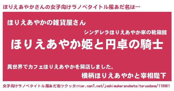 | 男性向けラノベタイトル風あだ名 | 『ホリエアヤカアートオンライン』 |