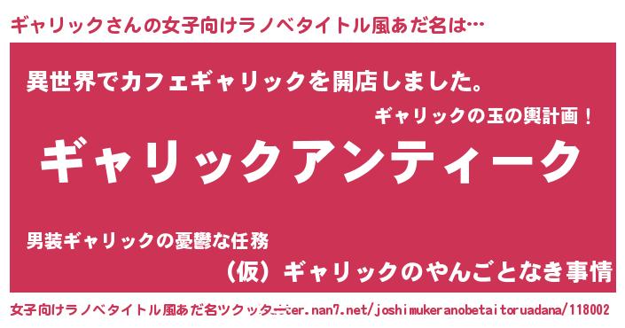 | ヘコむあだ名 | 『ギャリック(笑)』『ギャふぇ~』 |
