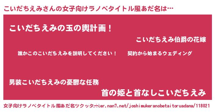 | 男性向けラノベタイトル風あだ名 | 『コイダチエミアートオンライン』 |
