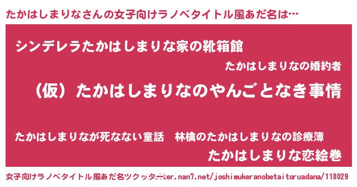 男性向けラノベタイトル風あだ名 | 『たかはしまりなの憂鬱』 |