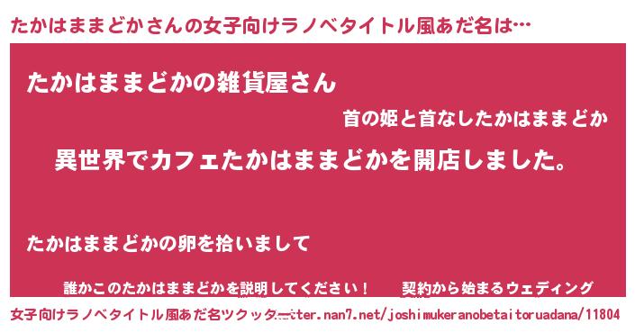 | 胡散臭い通販商品みたいなあだ名 | 『前代未聞の健康食品…その名も「たかはままどか」』 |
