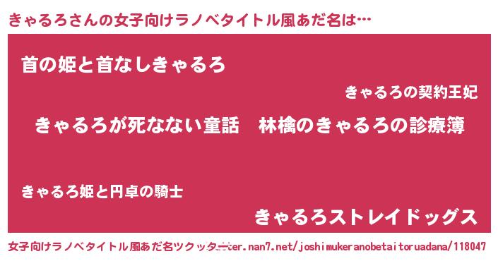 | 男性向けラノベタイトル風あだ名 | 『魔弾の王ときゃるろ』『きゃるろの憂鬱』 |