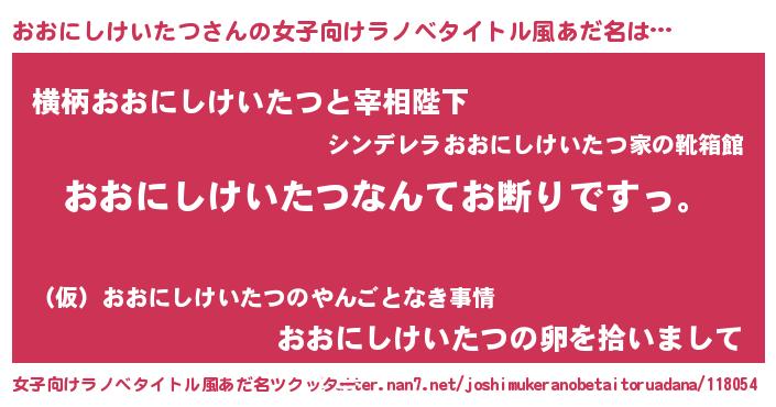 | 欧米人風あだ名 | 『ケンブリッジおおにしけいたつ』 |