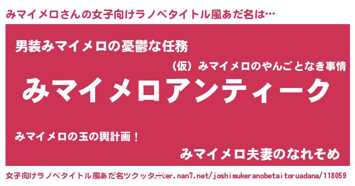 | 欧米人風あだ名 | 『ケンブリッジみマイメロ』 |