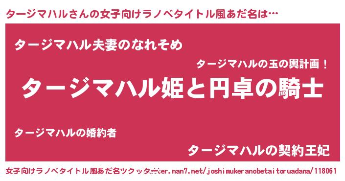 | 男性向けラノベタイトル風あだ名 | 『タージマハルアートオンライン』 |