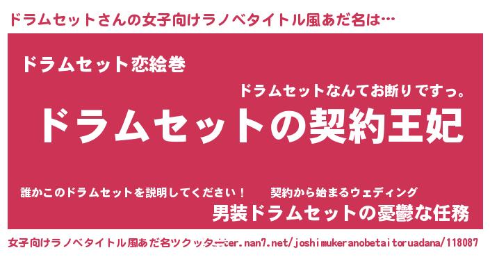 | 男性向けラノベタイトル風あだ名 | 『ドラムセットという概念が存在しない退屈な世界 』 |