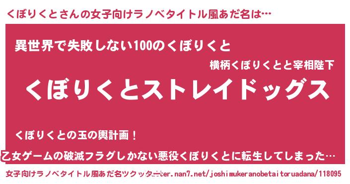 | 伝説のあだ名 | 『古文書に記された暗殺者くぼりくと』 |