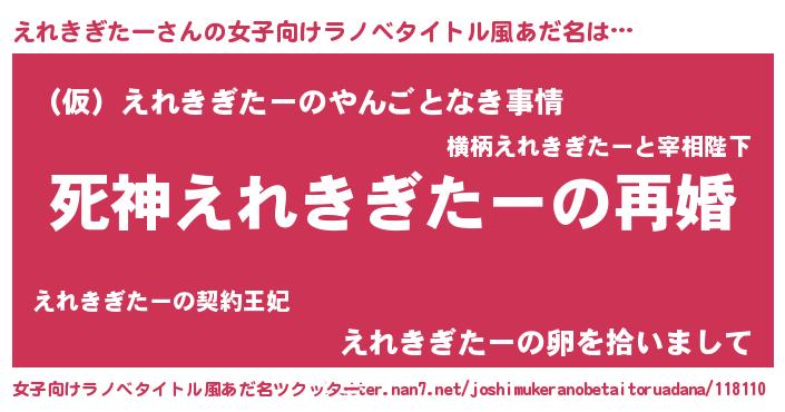 | ピコ太郎風あだ名 | 『エエ太郎』『エコ次郎』『エレ八郎』 |