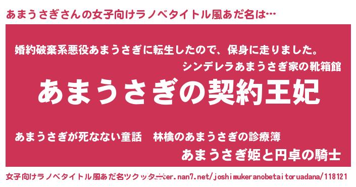 | 胡散臭い通販商品みたいなあだ名 | 『来世でも幸せになれる健康食品…その名も「あまうさぎ」』 |