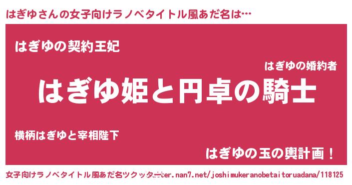 | 胡散臭い通販商品みたいなあだ名 | 『モテモテ間違いなし水晶球…その名も「はぎゆ」』 |
