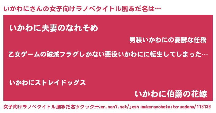 | ヒーロー風カッコイイあだ名 | 『仮面イカダー』『正義の使者いかわに』 |
