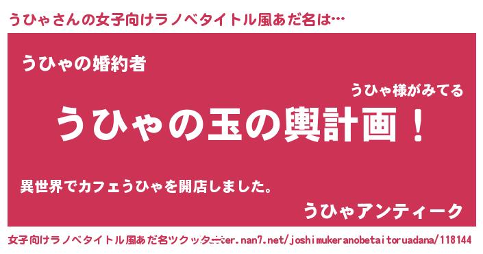 | 胡散臭い通販商品みたいなあだ名 | 『運命の人と巡り会える高級そうな壺…その名も「うひゃ」』 |
