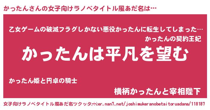 | 胡散臭い通販商品みたいなあだ名 | 『信頼と実績のサプリメント…その名も「かったん」』 |