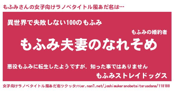 | 男性向けラノベタイトル風あだ名 | 『おまえをオタクにしてやるから、俺をもふみにしてくれ! 』 |