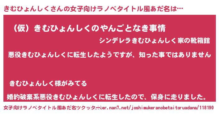 | 男性向けラノベタイトル風あだ名 | 『この素晴らしい世界にきむひょんしくを!』 |