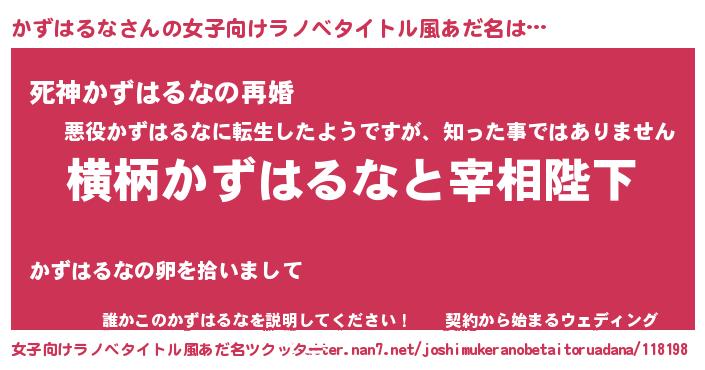 | 男性向けラノベタイトル風あだ名 | 『かずはるなに滅ぼされるだけの簡単なお仕事です』 |