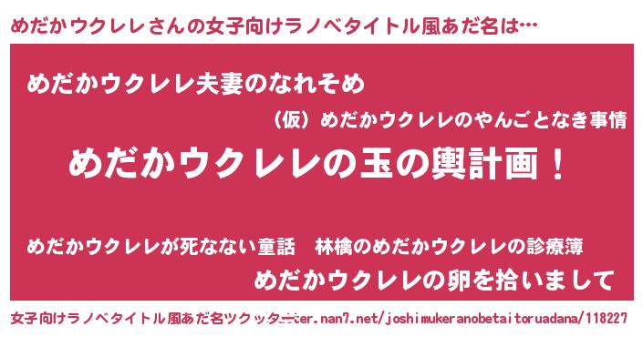 | 男性向けラノベタイトル風あだ名 | 『転生したらめだかウクレレだった件』 |