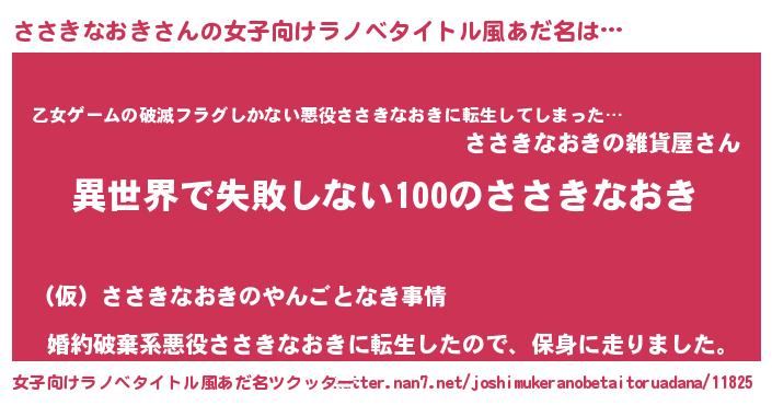 | 胡散臭い通販商品みたいなあだ名 | 『絶対に幸福をもたらす健康食品…その名も「ささきなおき」』 |