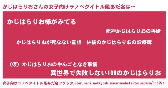 | 意味不明あだ名 | 『住所不定無職かじはらりお(4歳)』 |