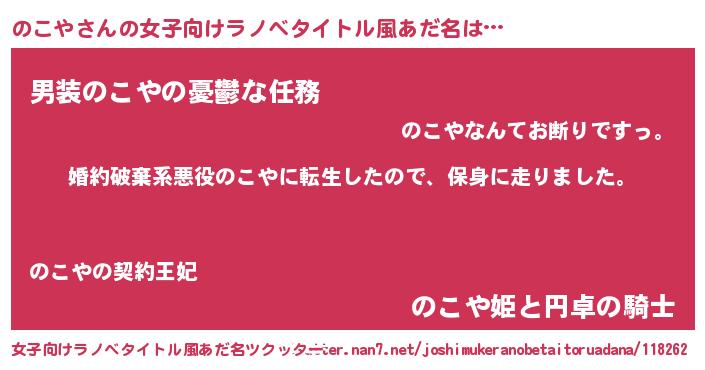 | 男性向けラノベタイトル風あだ名 | 『ノコヤスレイヤー』 |