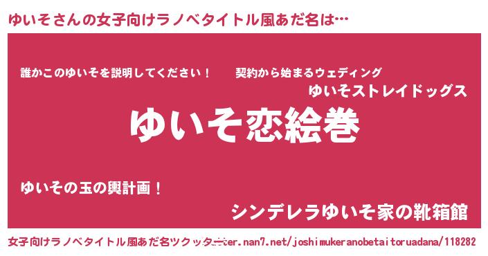 | 男性向けラノベタイトル風あだ名 | 『おまえをオタクにしてやるから、俺をゆいそにしてくれ! 』 |