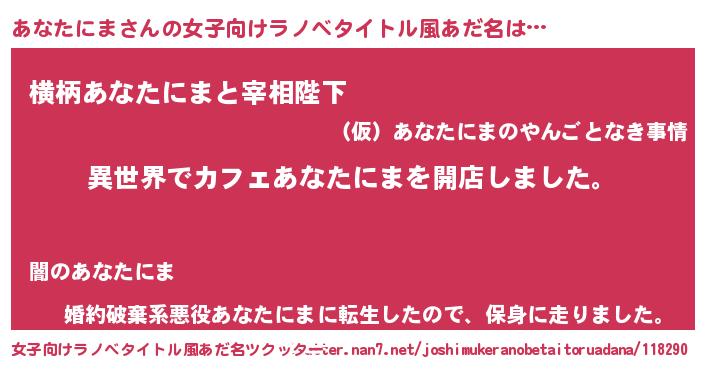 | ファンタジー風あだ名 | 『アナディッシュ』『ユリアナヴァット』 |