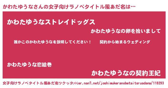 | ヘコむあだ名 | 『かわにゅー』『かわたゆうな(笑)』 |