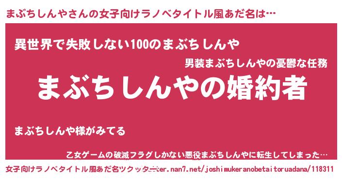| 男性向けラノベタイトル風あだ名 | 『うちの娘の為ならば、俺はもしかしたらまぶちしんやも倒せるかもしれない。』 |