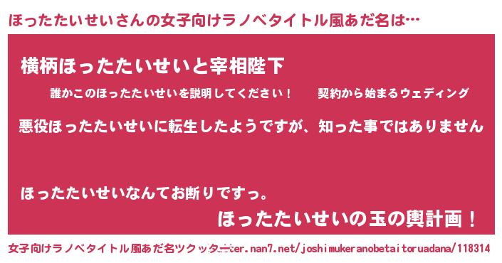 | 男性向けラノベタイトル風あだ名 | 『この素晴らしい世界にほったたいせいを!』 |