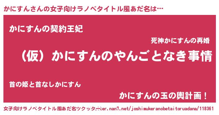 | 男性向けラノベタイトル風あだ名 | 『かにすんの憂鬱』 |