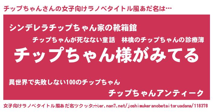 | 男性向けラノベタイトル風あだ名 | 『チップちゃんの嫁は女の子じゃないと思った?』 |