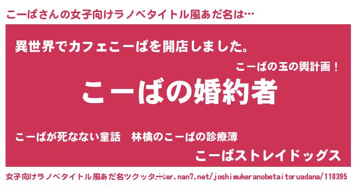 | 男性向けラノベタイトル風あだ名 | 『うちの娘の為ならば、俺はもしかしたらこーばも倒せるかもしれない。』 |