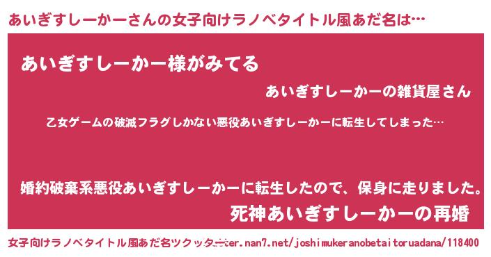 | 意味不明あだ名 | 『住所不定無職あいぎすしーかー(6歳)』 |