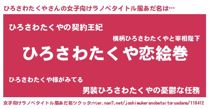 | 男性向けラノベタイトル風あだ名 | 『おまえをオタクにしてやるから、俺をひろさわたくやにしてくれ! 』 |