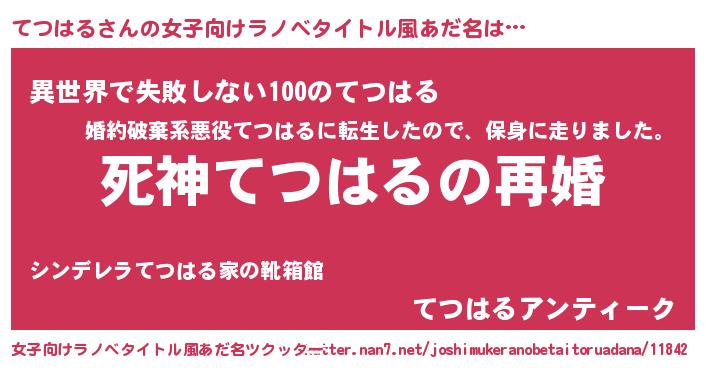 | 男性向けラノベタイトル風あだ名 | 『ノーゲーム・ノーテツハル』 |