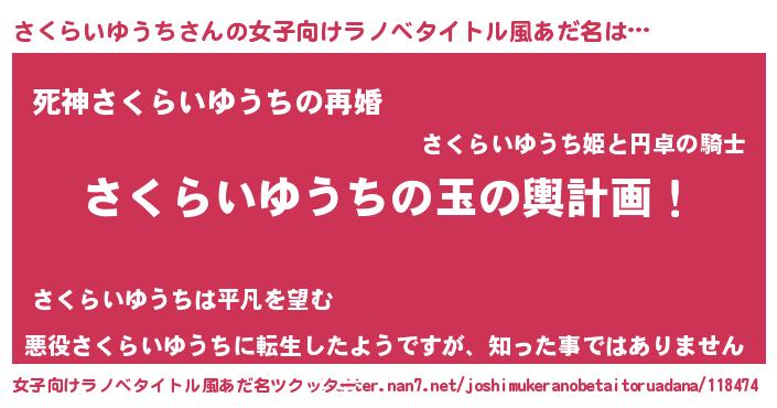 | 男性向けラノベタイトル風あだ名 | 『転生したらさくらいゆうちだった件』 |