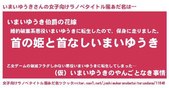 | 男性向けラノベタイトル風あだ名 | 『はたらくいまいゆうきさま!』 |