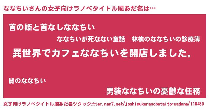 | 男性向けラノベタイトル風あだ名 | 『誰もが恐れるあのななちいが、ぼくの専属メイドになるようです。』 |
